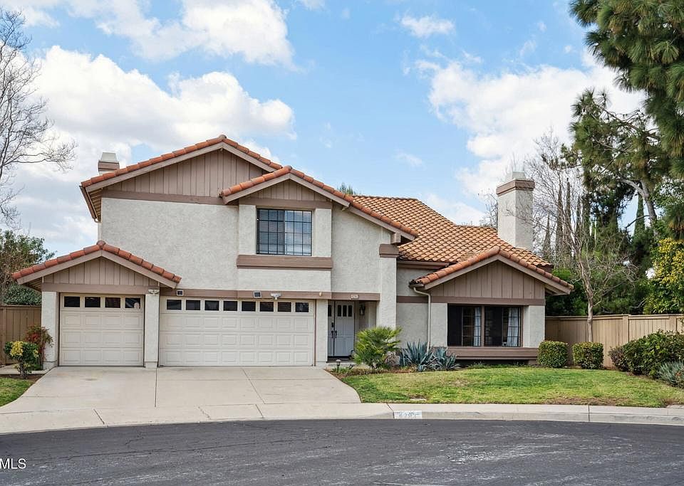 Nestled in the corner of a peaceful cul-de-sac in Moorpark, this beautifully updated 3,192 sq. ft. home sits on an 8,279 sq. ft. lot and features a spacious 3-car garage. Recently painted inside, the home also boasts new flooring, recessed lighting, and ceiling fans throughout.The first floor offers a formal dining room, family room, and living room, along with a laundry room and half bathroom. The west-facing kitchen is equipped with a nicely sized island, pantry, newer double ovens and cooktop, and a separate eating area, all overlooking the backyard pool and spa--the perfect spot to enjoy stunning sunset views.Upstairs, there are two master suites, two bedrooms and bonus room that can be made into a den, office or 5th bedroom . The first master suite includes a walk-in closet and overlooks the front yard with beautiful sunrise views. The true master suite features a fireplace, both a walk-in and standard closet, and ample storage. Its upgraded en-suite bathroom includes dual sinks, a soaking tub, a separate shower, and a private toilet area, all with a picturesque sunrise view of the backyard.The backyard is a private oasis, featuring a beautiful in-ground pool and spa, plus space for a grassy side yard for additional space. This stunning home offers comfort, space, and an unbeatable location.