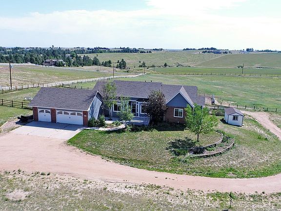 Outstanding horse property close-in*Just 200 yards off pavement*Great remodel with new windows, new exterior paint, new main level carpeting, lots of hardwood flooring, solid granite on all counter tops*Kitchen has eat-in area, tiled back splash, stainless steel appliances*Walk-out basement with mother-in-law quarters and kitchen with wet bar*48x24 horse barn with water and electric*Fenced and cross fenced*Covered deck has panoramic views*Large garden area wit 18x12 storage shed*Nice firepit*Low Elbert County taxes, but Douglas County schools*You're going to love this property!