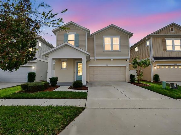 Welcome to 4294 Hibiscus Bloom Drive — a modern 2020-built home that blends privacy, convenience, and beautiful design. Nestled on a quiet dead-end street, this home offers a more exclusive and private setting while still placing you just 10 minutes from Orlando International Airport and minutes to shops, dining, schools, and major conveniences. Step inside to a wide, welcoming entrance and a bright first floor with tile throughout. The open-concept kitchen and living area are filled with natural light thanks to the home’s abundant windows. The kitchen features an oversized island with generous seating and workspace, creating the perfect gathering spot for cooking and entertaining. Upstairs, you'll find a spacious loft, an upstairs laundry room for added convenience, and well-appointed bedrooms. The primary suite includes elegant tray ceilings, a private balcony, and a modern ensuite bath. Enjoy the outdoors year-round with a covered rear porch and a fully fenced backyard that backs up to a conservation area — offering peaceful views and no rear neighbors. With a half bath on the main floor and a low HOA that keeps monthly costs comfortable, this home truly checks every box. If you’re looking for a home that delivers location, privacy, and contemporary living, this one deserves a closer look. Schedule your private showing today.
