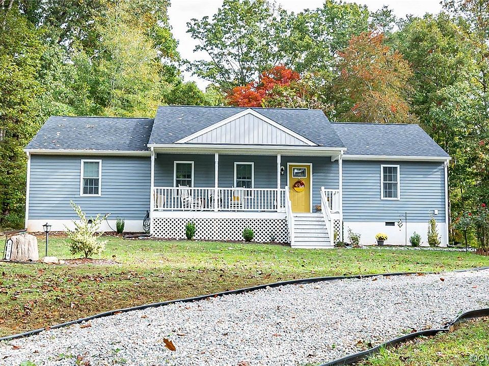 This home will NOT last! Like New Construction - Only 2 years old & Owner has taken amazing care of the property! This home is surrounded by woods, giving you all the privacy, while still being close to area schools & major highways. The front porch greets you and is the perfect place to enjoy your morning coffee. Open Concept Kitchen, equipped with stainless steel Frigidaire appliances, White subway tile backsplash & black tile accent over stove, pendant lighting over island with storage & three chairs, make entertaining a breeze. Dining area has lovely hanging light. Great use of space with a wallpapered drop zone at the back door, accessing the deck through a decorative door and a storm door. LVP Floors throughout Kitchen, Living Room, hall, & laundry room. Bedrooms carpeted and with ceiling fans, and beautiful tile in both bathrooms. Owner’s suite has two walk-in closets, en-suite with dual vanities, walk-in shower, & water closet. Attic access in laundry room. Verizon internet. Two connecting driveways, but please access home by way of the driveway just after the For Sale sign.