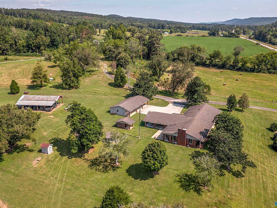 Mini-Farm Dream! ~10 acres in one of Attalla’s most coveted areas, w/ rolling countryside views & space to live the farm life you’ve always imagined. This spacious 5BR brick rancher offers easy one-level living plus a finished basement w/ bonus living space, bar, & storage. Gather in the open-concept kitchen and living area, or relax in the A-frame vaulted den w/ cozy rock fireplace. The large master suite boasts an updated bath for modern comfort. Outside, you’ll find room for everything—4-car carport & 4-bay detached garage/shop, plus a pole barn ready for horses, livestock, or equipment. City and well water available. Only ~10 minutes from Gadsden and Sardis.