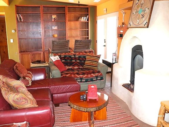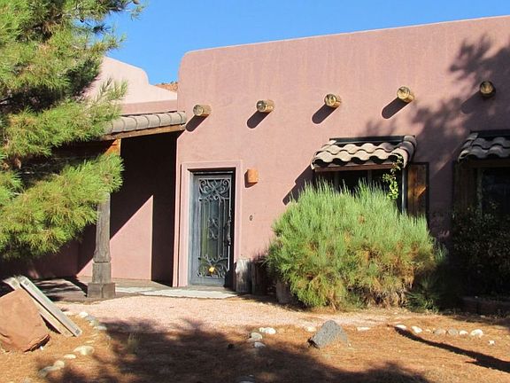 This beautiful home is nothing but delightful, and an absolute welcome oasis in the high desert. Built using custom high-quality materials and accentuated with a unique layout, this Adobe-style home covers about 1400 sq ft, and is both inviting and captivating. The Kiva-style fireplace in the living room makes one want to cozy up on the couch in front of it. When it's time to party with friends, or just a time for that morning sip of coffee, the backyard patio under the attached Portico made of large pine trees, is the perfect place to relax. Panoramic views of the towering red cliffs become your casual scenery as you unwind in the backyard. If stargazing is desired, the rooftop is the ideal spot. Oh yes, parties can be held on the rooftop as well! The home sits on 1.05-acre of land, and also features an oversized garage with high ceilings for your luxury RV and a pet-friendly fully-fenced & fully-landscaped front yard. The best way to feel the magic, is to experience it in person. Easy to show. Buyer to verify all info.