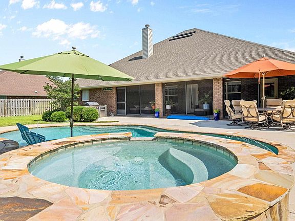 Incredible Pool with a built in jacuzzi and custom fire pit! Home in the Exclusive Gates at Soundside! This home is the perfect outside oasis. Welcome to this beautifully updated 4-bedroom, PLUS an office, 3-bath home located in The Gates at Soundside a unique gated community with only 8 prime homesites, just off the scenic and sought-after Soundside Drive in Gulf Breeze. Enjoy peaceful strolls, morning runs, or evening dog walks along this picturesque stretch, with breathtaking views of the Santa Rosa Sound just moments from your doorstep.This stunning 3,006 sq ft home boasts an open, spacious floor plan and is loaded with custom features throughout. The resort-style backyard is a true retreat, complete with a sparkling pool, built-in jacuzzi, and a matching custom fire pit —perfect for entertaining or relaxing year-round. The home’s elevation offers striking curb appeal with stacked stone gables, shake dormers, and craftsman-inspired detailing. Step inside to find a gourmet kitchen featuring granite countertops, crown molding, recessed lighting, upgraded stainless steel appliances, A fridge with a coffee maker, a large island with breakfast bar, built-in desk, and pendant lighting that opens into a warm & inviting living room centered around a gorgeous stacked stone fireplace. The luxurious master suite offers dual walk-in closets with custom cabinetry, a granite double vanity, and a large tiled walk-in shower. All bathrooms have been tastefully updated with custom finishes.Enjoy Florida living on the expansive 38' x 10' screened back porch, complete with ceiling fans and brick columns — the perfect spot to unwind in privacy and style. Additional highlights include an oversized 30-ft deep garage, craftsman-style fiberglass front door, updated flooring throughout, hand-scraped wood flooring, bullnose corners, 5 ¼” baseboards, crown molding, custom paint, dimensional shingles, very nice fixtures, Wayne Dalton Fabric Shield hurricane protection, and full landscaping