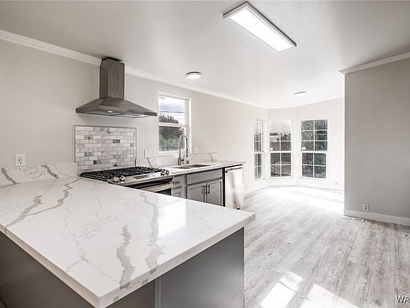 Come and check out this beautiful home in the heart of Kingman, AZ, this stunning country home sits on a full acre of prime horse property, offering the perfect blend of rural charm and modern luxury. Completely renovated from top to bottom, this home is move-in ready just unpack and enjoy! The beautifully remodeled kitchen features elegant Calcutta countertops, brand-new cabinetry, and glue-down LVP flooring for a seamless and stylish finish. Crown molding adds a touch of sophistication to both the kitchen and bathrooms, while hand-textured ceilings create a warm and inviting atmosphere. A thoughtfully designed layout includes a spacious kitchen pantry and an indoor laundry room for added convenience. The bathrooms are nothing short of spa-like, featuring a beautifully tiled shower, dual sinks, and a luxurious soaker tub with a custom tile surround perfect for unwinding after a long day. With every inch of this home meticulously upgraded, there is truly nothing left to do but settle in and start enjoying the peaceful country lifestyle in Kingman!