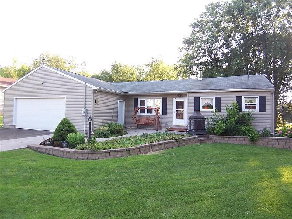 Well maintained and upgraded 1440 square foot, 3 bedroom, 2 full bath ranch on almost 1 acre on a quiet, country road! Attached garage and master suite added in 2005, low maintenance vinyl siding, new laminate flooring, several new vinyl windows, public water, Cable available, well landscaped with small pond. Stove and refrigerator included with sale. Call today!