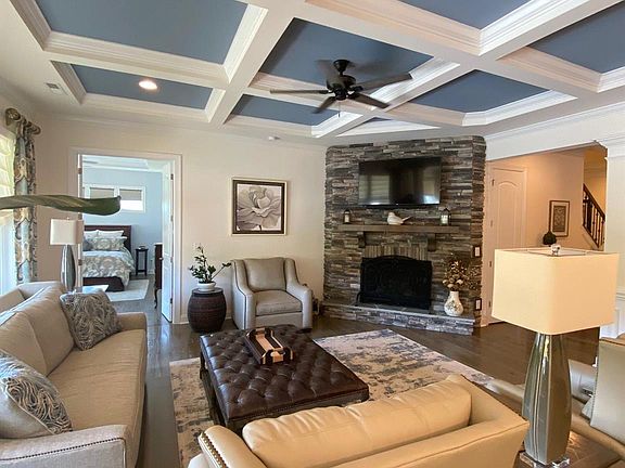 Stunning .70acre cul-de-sac retreat has 10 ft ceilings, gorgeous hardwood floors, custom trim work and much more. Split floor plan includes primary suite on main, two additional bedrooms with shared bath. Main level has a dedicated office, light-filled dining and living rooms, and open concept. The kitchen includes a gas cooktop, wall oven and microwave. The second floor features a huge bedroom/bonus room with walk-in-closet and full bath. Backyard oasis boasts a saltwater pool, fire pit, full covered porch, and a custom-built outdoor kitchen / grill station with fridge and additional storage unit. Note: Home was sold off-market and has been entered for comp. purposes.