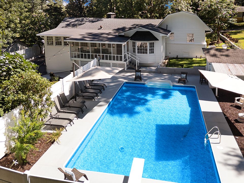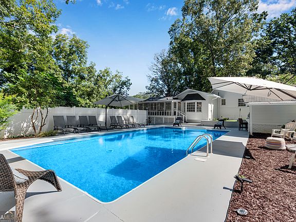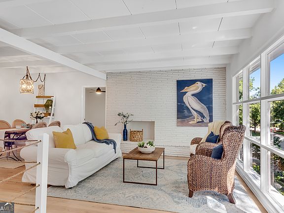 Stunning updated midcentury modern ranch on a finished basement with a private pool. Live on vacation year around! NO HOA. 4 bed 3 bath home designed for entertaining and multi-generational living, teen suite, studio apartment, Airbnb, or ADU. Sits on a private, nearly 0.5 acre wooded lot, boasting coastal beach house charm, distinguished curb appeal, and spectacular views throughout. Open floor plan allows for multiple sitting and dining areas making entertaining effortless. Natural light pours through numerous windows providing a bright and airy space. Freshly painted interiors and exteriors, new laminate hardwood flooring, new designer lighting, and blinds throughout. Custom built exposed beams and elongated brick enhance the gorgeous interior spaces. Master on the main includes a sitting room and double sinks, new shower, and fixtures. Spacious secondary bedrooms. Kitchen includes a gorgeous view of the pool and stainless-steel appliances, an abundance of cabinets and new countertops. Two washer and dryer hook ups, one per level, a newer roof, newer HVAC unit, and two fireplaces ensure modern comfort. Sip your morning coffee on the front porch or the tranquil covered screened back porch while looking at your picturesque seasonal views while listening to birds sing. Finished basement featuring a zero level entry, wide door openings, a barrier free shower with a three-function shower head and custom sink bowl, its own washer and dryer, bedroom, closet, common area that has a fireplace, and a kitchen can be added. The outdoor oasis includes a private fenced 18x40 in-ground pool with a pool house and cabana, set within a 3-tiered backyard featuring a gardening area and entertainment space with a fireplace, perfect for gatherings. A long driveway accommodates 7-8 additional cars, paired with a 4-car garage/ carport and a storage shed provides extra space. Mature landscaping with peonies, oak trees, azaleas, hydrangeas, roses, lilies, and a 20-foot Brown Turkey fig tree enhances the large private wooded lot, offering spectacular views. Zoned for the award-winning North Gwinnett High School, North Gwinnett Middle, and Roberts Elementary. Close to Suwanee Town Center, Downtown Sugar Hill, and the Historic Downtown Buford District, you will always have access to fantastic restaurants, local boutiques, farmers markets, multiple fitness studios, community events, concerts, festivals, playgrounds, greenspaces, walking and biking trails and more! This home, with its open floor plan and versatile spaces, accommodates multi-generational living or separate living areas for Airbnb or additional dwelling units, making it a rare find in a prime location. Your sanctuary awaits you! INGROUND POOL. MASTER ON MAIN. RANCH HOME. NO HOA.