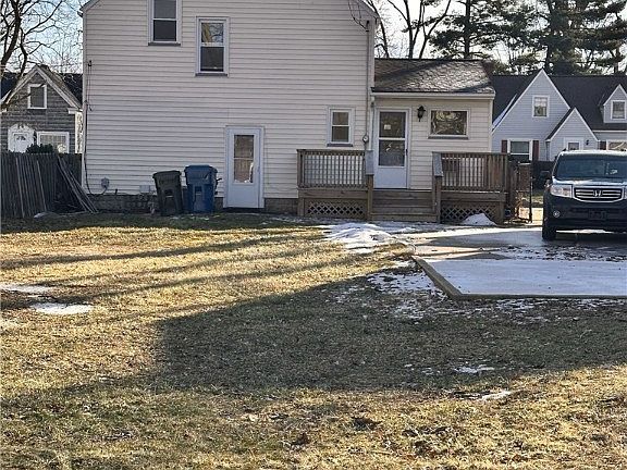 Not too many homes to choose from right now so do not miss out on this great opportunity. This 3 bedroom 1 bath Colonial packs a punch for its size. Many updates have been made to this home over the years. It has a nice kitchen with newer cabinets that have lighting below that helps feature the countertops and has a nice glow. Appliances include a large side-by-side refrigerator, range oven, microwave, and dishwasher. The living room features a fireplace and the dining room has built-in cabinets. The bonus family room next to the living room has a cathedral ceiling with a fan and has access to the backyard deck. Bedrooms are all upstairs including the main bath that has been updated. The basement is partially finished and has a sitting area, a laundry area with a toilet, and a small workshop. The backyard is very large and nice with plenty of room to play in. The garage had to be taken down but the foundation still exists. A one-year home warranty is included for the buyer.