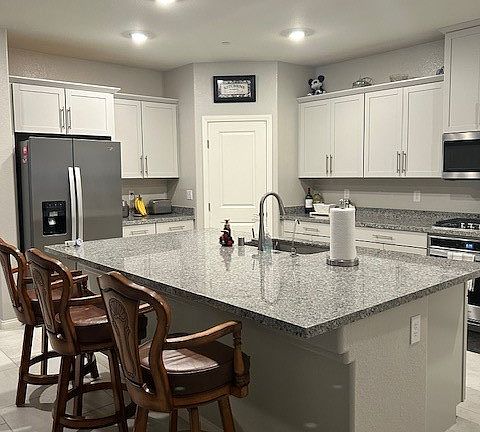 Beautiful modern 2 story, 4 bedroom 2 1/2 bath. 2 car garage home on a cul-de- sac with no rear neighbor. Grey cabinetry with hardware, granite countertops at kitchen and vanities, stainless steel microwave, range, and dishwasher, undermount single bowl kitchen sink. garage door opener, paver driveway and walkways, pre-plumb for soft water loop , smart home features. Synthetic lawn in rear yard. Includes blinds and refrigerator.