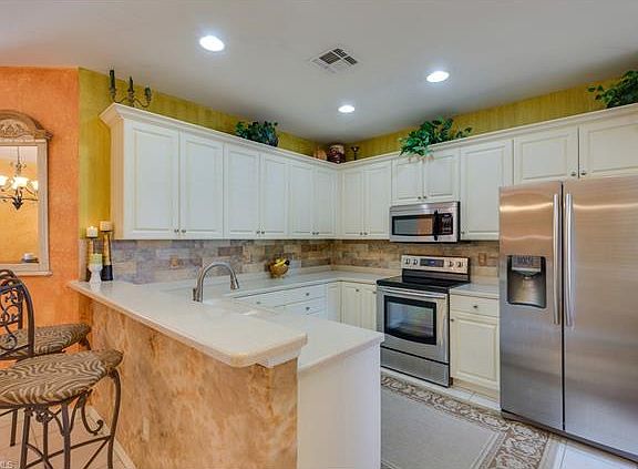MOVE-IN READY! All your decorating is done! Lovely warm Tuscan colors complement this Mediterranean style villa. No detail has been overlooked in this stunning home. Meticulously maintained and immaculately kept! Upgraded SS appliances. Corian Countertops. Relax on your private lanai while enjoying water views & wonderful wildlife it attracts! 2-car garage w/attic above allows a massive storage. This charming community boasts a large placid lake w/private beach, gazebo, picnic area, lighting and walking paths. Pets are welcome too! For swimmers there is an Olympic Size Lap Pool to enjoy! Fitness Center. The attractive clubhouse hosts many fun-filled activities during the year. The lush landscaping is marvelously maintained without you ever lifting a finger! The secure gated entry allows you peace of mind! Province Park is centrally located -- only minutes to RSW Airport, Jet Blue Park, 6-Mile Cypress Slough, I-75, shopping & more. Minutes to the white sandy beaches of Fort Myers, Sanibel and Captiva, etc. This prime piece of Paradise will not last long! Check out our 25 high resolution photos & virtual tour-schedule your private showing today! New Hot Water Heater too!
