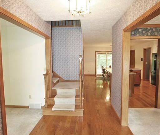 Custom built colonial situated on a treed cul-de-sac lot tucked away at the back of L'Ermitage subdivision. Close to the Red Park, Safety Town and Oregon Trail Park that features variety of facilities which include the Rotary sponsored Skate Park, baseball fields, soccer fields, a meeting room, concession stand, restrooms. This home has only had 2 owners that have taken very good care of the home. Custom woodwork/trim throughout. Hardwood flooring in the foyer and kitchen. Formal living room with French doors that open to the large family with brick wood burning fireplace and bay window that offers a view of the backyard and tree line. Formal dining room off the kitchen. The kitchen has newer appliances and a working center island with a double bowl sink that overlooks the oversized dinette area and the family room. First floor laundry room with a door leading to the backyard. Off the dinette area is a 3 season sun room that leads to the rear deck. What a great place to enjoy the summer days and evenings! The 2nd floor has a master suite with private full bath. There are 3 remaining bedrooms and guest bath completing the 2nd floor. The roof was replaced in 2011. The Hi-Efficiency furnace, central air conditioner and tankless hot water heater were installed in 2011. The covered front porch extends across the entire front of the home and is perfect for relaxing. A home warranty is being offered on this home. Don't let his one slip away!