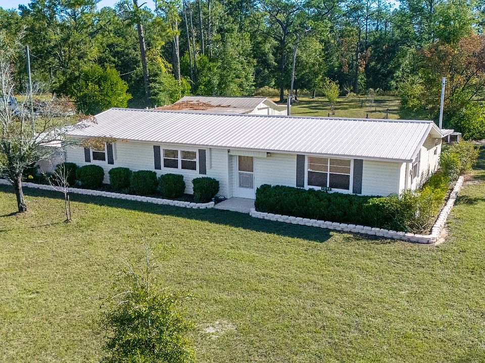 This 3-bedroom, 2.5-bath home sits on 2 acres and offers practical features for comfortable living and multi-use needs. The home includes a metal roof, updated interior paint, and new flooring. A covered back patio provides a functional outdoor space with views of the property. The land includes irrigation throughout the acreage, creating ideal gardening areas. A detached shed/workshop with welding receptacles supports projects, storage, or hobby use. For additional flexibility, the property offers two RV hookups—one 50-amp hookup with water, sewer, and electric, and one 30-amp hookup with water and power. The fenced backyard section works well for small pets. A small pond adds to the setting, and deer and turkey frequently pass through the property. Come take a look!
