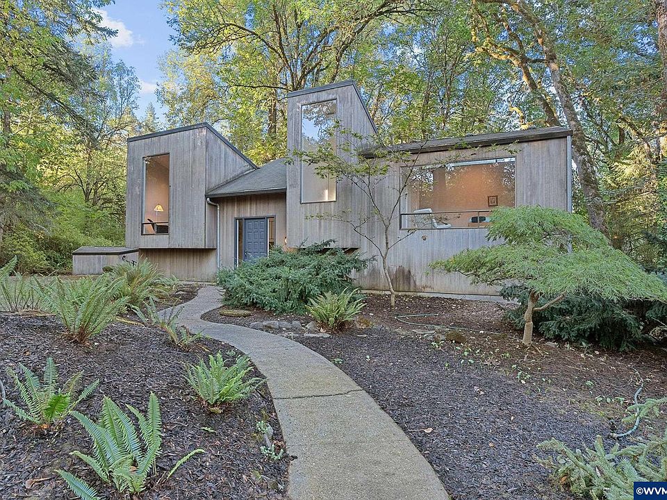 Tucked away on nearly 2 acres in the treetops of Salem, this 1973 Frank Lloyd Wright-inspired prairie gem is where architectural charm meets modern flair. With 3 bedrooms, 2 baths and a nice flexible space that makes a perfect office or family room, this home is a hidden haven minutes from Illahe Golf & Country Club. Meander up the private drive and discover sweeping eaves, low-slung lines, and walls that whisper mid-century secrets. Inside you'll find new 2024 vinyl plank floors that lay the foundation for your next chapter, while the brand-new stainless steel oven and dishwasher gleam. Sunlight beams through generous windows, spotlighting the cozy, grounded elegance only a Wright-style home can deliver. Upon entering you are greeted by the stunning living room with a swanky fireplace at the center. Whether you’re sipping coffee on the deck or plotting your short game over breakfast, this secluded sanctuary offers peace, privacy, and personality in equal measure. Come for the architecture, stay for the serenity — you’ve found your hideaway.