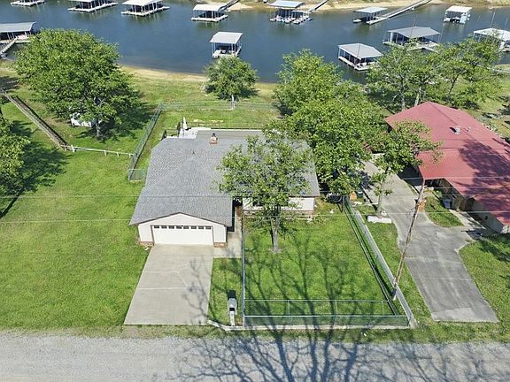Imagine waking up every morning to breathtaking lakefront views, streaming through a stunning sunroom in your turnkey dream home. This exceptional property features a wraparound deck overlooking a peaceful cove and your own private boat dock, complete with a new boat lift for easy access to the water. No detail was overlooked in the top-to-bottom remodel, including luxurious LVP flooring throughout. The chef’s kitchen is fully equipped with brand new granite countertops, an eye-catching sea blue tile backsplash, a commercial-style pull-down faucet, an upgraded stainless steel workstation sink, and even a wine fridge for entertaining in style. Spa-inspired bathrooms boast designer tile showers with sleek sliding glass doors and modern vanities. Picture cozy evenings by the large stone wood-burning fireplace in the open concept living area. Step into the sunroom, a newer construction addition, then out onto the expansive wraparound deck—ideal for unforgettable gatherings with a gas grill, hightop patio bar, and generous dining space. The roof and gutters were replaced in 2024 for peace of mind. Move in with ease, as the house comes fully furnished—including all appliances, a wine fridge, an ice maker, and an extra garage refrigerator. Mature trees provide natural privacy, and the property is fully fenced for your pets, complete with a convenient doggie door. The private dock and new boat lift are engineered to fit a tri-toon boat, making every lake day effortless. Located in the prestigious Lakeview Country Estates, less than a mile from the marina, this home offers a rare combination of tranquility and convenience. Whether you’re searching for a personal sanctuary or a lucrative Airbnb opportunity, this spectacular lakefront retreat is ready to exceed your expectations.