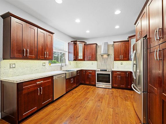 This exquisite 4 bedroom, 3 bathroom home exudes charm & elegance. The updated kitchen features stainless appliances, farmhouse sink & quartz counters. Primary bdrm is a sanctuary itself, w/ private balcony overlooking the lake & additional sitting room can easily transform into an office or serve as a 5th bedroom. Additional bedrooms are spacious w/ great closet space. Boasting a refreshing pool & screened in patio, it's ideal for entertaining. Recently painted exterior & new exterior lights enhance its curb appeal, while the aluminum fence surrounding the backyard provides both security & style. W/ a spacious 3 car garage providing ample storage space, this home combines luxury, functionality, and breathtaking views, promising a lifestyle of comfort & relaxation.