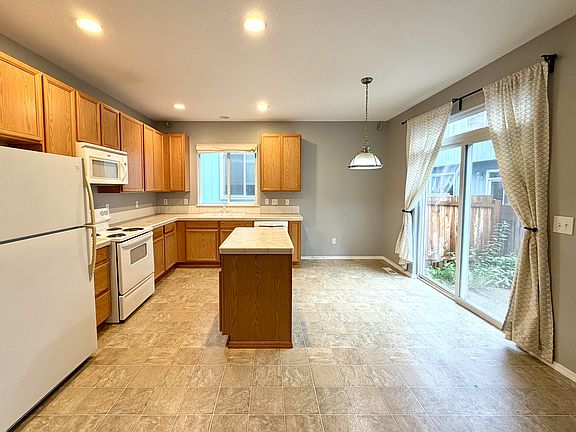 This home offers a spacious open floor plan with open sightlines from the living area to kitchen with pantry storage, all appliances and kitchen island. Back yard is low maintenance with fenced in patio and deck. Large loft space upstairs suitable for a den or additional living space. Bedrooms are generous in size with primary bedroom suite featuring vaulted ceilings, double sink vanity and walk-in closet. Laundry room with washer/dryer are conveniently located on the bedroom level. Located near several community parks and just minutes to shopping, restaurants, Intel, Hidden Creek Community Center and more.
