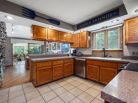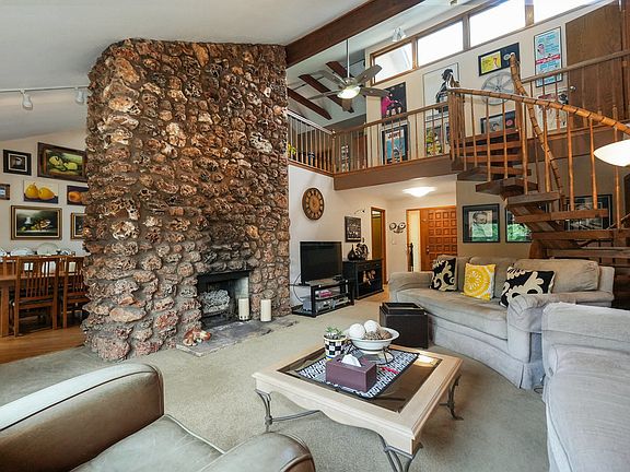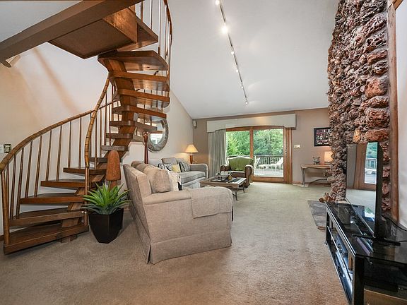 Exceptional contemporary style home on beautiful .79 acre lot! So much potential in this home with a cool, modern floorplan including main level primary suite! The living room greets you from the foyer as you enter with vaulted ceiling & skylights, 2 story see-thru fireplace, spiral stairs to loft, and south-facing windows. The kitchen is well appointed with lots of cabinet space, stainless steel appliances, solid surface countertops & breakfast bar which opens to the dining room with vaulted ceiling & sliding glass door to the sunroom. The 3 bedrooms are on the main level - 2 generous sized secondary bedrooms next to a hall bathroom plus the primary suite with vaulted ceiling, walk-in closet & full bath. Upstairs is a spacious loft overlooking the main floor with plenty of room for an office or 4th bedroom and a full bath. The walkout basement features rough in plumbing for a bathroom, laundry area & 2 sliding glass doors to a patio which is also accessible from the deck above. Beautiful setting with mature trees and tons of yard space for whatever activities you dream of. The Windings of Ferson Creek HOA ($800 annually) include community pool, clubhouse, tennis courts & signage. Home being sold AS IS. Public water & sewer. No FHA. Please exclude primary bedroom draperies.