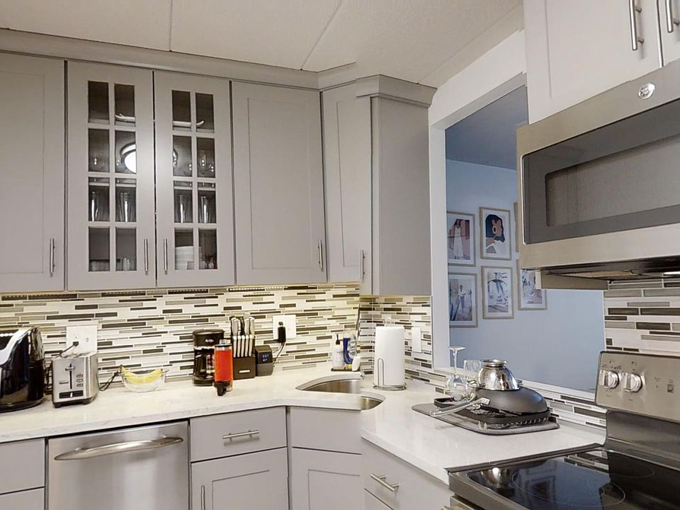 Beautiful 1 bed 1 bath unit in great tree lined Melrose location! Perfect for commuters! Recently renovated kitchen with custom cabinets, quartz counter, glass back splash and gorgeous stainless-steel appliances, Newer carpet throughout. Unit features good sized balcony, single car garage with shelfs for storage and additional storage space in basement. Building has security camera for added safety. Close to Franklin St. Whole Foods, shops and restaurants as well as Public Transportation - Highlands Commuter Rail and MBTA Bus Move right in and enjoy all that Melrose has to offer! Tenant pays electricity internet and cable. All other utilities included in rent.
