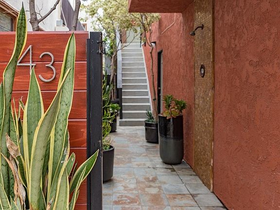 Very nice rear unit of a "Walk-Street" duplex just a few doors to the beach! The unit is situated above the garage and is configured for seclusion and privacy. At the top of the stairs, you will enter a gated and secluded 200 sqft deck/patio for your outdoor furniture, BBQ, or perhaps a hammock. From there enter the 750 ( ) sqft unit through either of two double doors into a combined living area/kitchen with lovely cabinets, granite counter tops, nice appliances (gas range with stainless vent hood, stainless refrigerator, huge stainless dual sink, and a breakfast bar. Down the hall are two bedrooms and two bathrooms. Parking in tandem side-by-side for 2 average size vehicles in the garage shared with the front unit tenant. There is also a shared washer/dryer in the garage. Just outside the garage on the east side is a shared outdoor shower. Water, gas & trash removal are included. Electricity, internet- TV are NOT included.