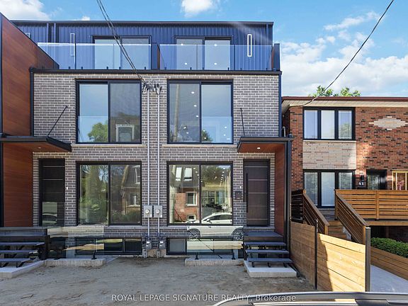 Rare Lease Opportunity! Be the first to live in this stunning, brand-new 3-storey townhouse in the heart of South Riverdale offering over 2,000sqft of thoughtfully designed, stylish living space in one of Toronto's most vibrant communities. The bright, open-concept main floor boasts 9-foot ceilings, floor-to-ceiling windows, engineered hardwood floors, and sleek LED lighting throughout. At the centre of it all is a modern chefs kitchen featuring quartz countertops, matching backsplash, an impressive 11-foot island, stainless steel appliances including a gas stove, built-in dishwasher, fridge & freezer, and beverage cooler. The spacious family room opens through oversized sliding doors to a private deck and fenced backyard great for seamless indoor-outdoor living and entertaining. The second floor includes a luxurious primary suite with double closets and a spa-inspired open-concept 7-piece ensuite including a soaker tub, double vanity, glass-enclosed shower, and water closet. This level also includes a generous second bedroom with a Juliet balcony, a full 4-piece bathroom, and a convenient laundry area. The third floor is flooded with natural light from skylights and features two additional bedrooms each with their own balcony, 3-piece ensuite, and a dedicated A/C unit for maximum comfort. Located just steps from Dundas St E., Queen St. E and the best of Leslieville, you'll enjoy a short walk to trendy cafes, restaurants, shops, parks, and the Jimmie Simpson Recreation Centre. With easy access to transit, top schools, and downtown Toronto, this location truly has it all.