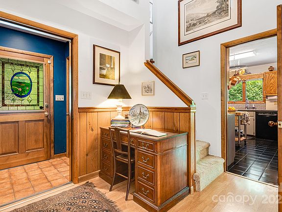 Welcome to this inviting 3BD/2.5BA home where comfort and convenience come together! Located just minutes from schools, shopping, restaurants, and groceries, it offers easy year-round access and a thoughtfully designed layout. Multiple flex spaces provide options for a home office, guest room, or creative studio. Enjoy energy efficiency with passive solar design in the home, plus a cozy sitting area featuring a wood stove, eat-in kitchen w/breakfast bar, dining room and living room w/soaring ceilings. Carolina Closet systems add smart organization in every bedroom. The star of the home is the gorgeous 4-seasons room, perfect for relaxing while overlooking your beautifully landscaped, park-like backyard—complete with a small creek, mature grapevine arbor and vibrant blooms. A covered concrete patio with built-in deck seating is ideal for entertaining. With a large garage, extra parking, and a well-maintained interior and exterior, this property is truly a hidden gem in a prime location.