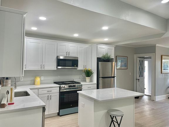 White shaker cabinetsUpdated bathroomsStainless appliancesNew flooring