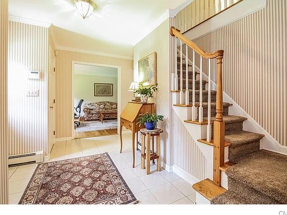 Lovely colonial in sought after Huntington neighborhood on cul de sac. Oversized eat in kitchen with granite counter tops and door to deck overlooking beautiful yard. Family room with vaulted ceiling and fireplace. Formal dining room and living room with hardwood floors. Master bedroom with vaulted ceiling, a full bath with granite counter tops and a walk in closet. 3 more generous sized bedrooms. Large Finished walk out lower level with half bath. Inlaw potential