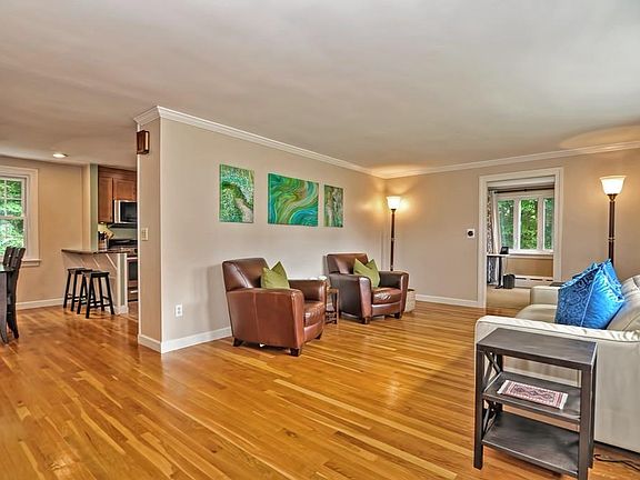 This spacious ranch with a 2 car garage offers easy living and an open floor plan, plus a premier location on lovely Baker Street - close to the commuter rail, shopping and major routes. The beautiful updated kitchen features granite counters, stainless appliances, large island and open dining area. Wonderful and inviting living/family room with gorgeous fireplace and built-ins, hardwood floors and large windows, welcoming the natural light in. Fabulous home office or den with wall of windows, separate entrance and very large pantry that's ideal for storage, electronics or even another room! Master bedroom easily accommodates a king size bed, and offers a wonderful built-in closet system; second bedroom upstairs is spacious and bright. The full bath with new vanity & granite counter complete the main level. The walkout lower level offers 500sf+ of flexible space, with a game room, bedroom and a full bath. Gorgeous yard; brick patio w/pergola. New, state-of-the-art heating system!