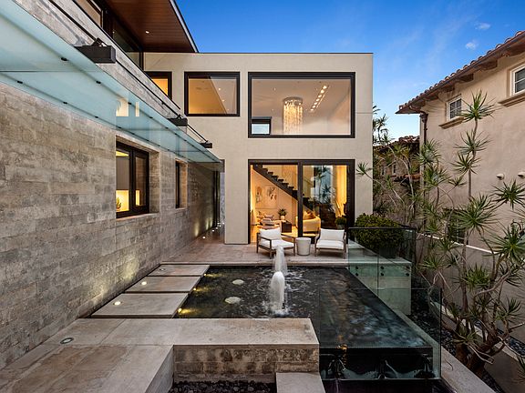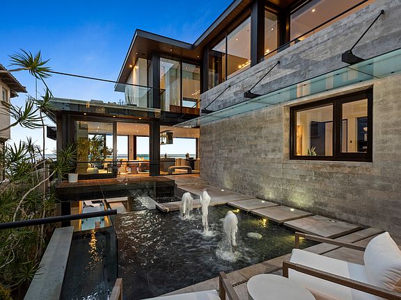 Behind the exclusive guard-gated enclave of The Strand at Headlands, this alluring contemporary residence epitomizes the pinnacle of luxury beachside living. Conceived by renowned architect, Horst Noppenberger, this property was custom built and tailored to enjoy the most awe-inspiring panoramic ocean and Catalina views. Spanning over 6,300 square feet of interior space, steel frames allow for fewer walls and large floor to ceiling windows, embracing an open-concept layout throughout. Upon entering, you are greeted by a dramatic entrance of stone walls and an alluring courtyard of ponds and fountains that overflow into the backyard pool and spa. With ample space across three levels, this home boasts 2 primary suites, 4 guest bedrooms, including an office equipped with a Murphy bed, and a secondary living room with its own private entrance. The gourmet kitchen offers minimalist features of sleek cabinetry, dual sinks, and butler's pantry of two Bosch dishwashers, 3 Sub Zero refrigerators, Wolf ovens, 2 wine refrigerators, and a generous size island for entertaining. Adjacent to the kitchen is the living room and dining room, which are complemented by the stone fireplace, neutral tones, and glass sliding doors that open up to the expansive deck overlooking the backyard, built-in BBQ, and several other seating areas to take in the mesmerizing sunsets. The exquisite primary suite showcases the most splendid views in the house, boasting a generous wrap-around deck complete with an outdoor fireplace. Moreover, it offers convenient amenities such as a mini bar featuring a sink and fridge, alongside a luxurious bathroom and a spacious walk-in closet. Fully equipped with an elevator, security system, subterranean parking, and state-of-the-art smart home technology (featuring Lutron, Sonos, and Nest systems), this estate offers every modern convenience imaginable. Further enhancing its appeal are accommodations for up to four cars in the garage plus a separate garage with two golf carts; outdoor fire pits and ceiling heaters; a community clubhouse offering a pool, spa, gym, recreation room; and direct access to The Strand Beach. Renter is responsible for utilities with a long term lease.