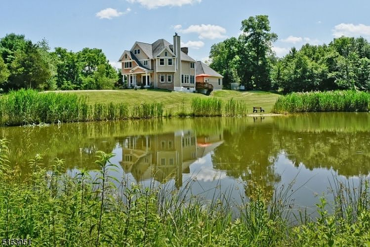 The custom-built Victorian farmhouse boasts an impressive list of amenities and appointments. Convenient for Newark and Manhattan, yet in a beautiful rural location; this tranquil and idyllic custom-built home gives you the best of both worlds. It offers seclusion and privacy, with 3.23 acres, including a pond and horse pasture with a stable. Boasts three spacious double bedrooms, all of which have beautiful views. The Primary bedroom includes a seating area, a primary bath with a separate shower and soaking tub, two separate vanity sinks, and two walk-in closets. The other two bedrooms, each with walk-in closets, share a bathroom with a jetted tub. The main floor offers a large kitchen with a breakfast nook, pantry, six-ring gas range, French door refrigerator, and ample cupboards. The family room features a large stone fireplace, has sweeping views across the pond, and has access to the deck. A separate living room library has a gas fireplace. The dining room has ample space for a large dining table. There is a half bathroom on this level, and a mud laundry room with its own utility sink and shower cubicle. The walk-in basement is unfinished, but has plenty of potentials, and has a wood-burning stove, a Buderis high-efficiency boiler, and an external portable generator hook-up with a generator breaker. A three-car garage offers a sink and water hook-up, and an integrated overhead heater. The entire house has a security system.