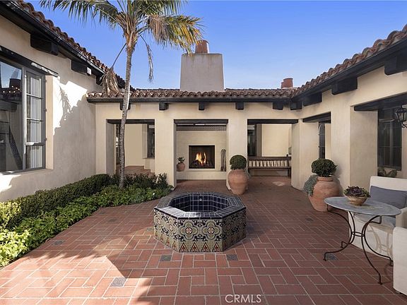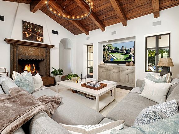 Nestled on a prestigious corner lot in Shady Canyon, this reimagined Spanish Colonial masterpiece blends architectural grandeur with refined contemporary living. Designed as a single-level estate with a remarkable subterranean retreat, the home seamlessly integrates luminous interiors with enchanting outdoor spaces. A dramatic rotunda foyer leads to exquisite living areas adorned with Carrera marble, artisanal wall treatments, intricate tilework, and stately beamed ceilings. Expansive steel-framed windows and French doors flood the interiors with natural light, connecting to intimate courtyards and terraces. The formal living room, warmed by a fireplace and sophisticated bar niche, flows effortlessly into the dining room, which opens to a serene courtyard and private terrace with a catering kitchen and barbecue. The chef's kitchen boasts soaring ceilings, antique herringbone brick flooring, a Wolf range, and a Sub-Zero glass-door refrigerator, connecting seamlessly to a sunlit family room and breakfast nook. The primary suite offers a private loggia, lush gardens, and dual spa-inspired baths. A separate wing features two en-suite bedrooms with secluded courtyards. The subterranean level is an entertainer's dream with a game room, home theater, guest suite, and extensive wine cellar with a tasting salon. Outdoors, a pristine pool, sun-drenched terrace, second catering kitchen, and barbecue pavilion create a private oasis. Additional highlights include a refined office, spacious laundry room, state-of-the-art home gym, and three-car garage. Residents enjoy world-class amenities and 24-hour guard-gated security, embodying the quintessential California lifestyle.