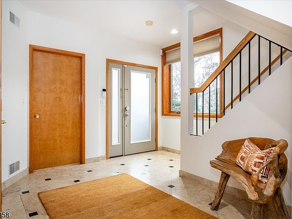 Don't miss this special contemporary home offering seasonal NYC views set on a secluded, private lot so close to vibrant Upper Montclair Village. Oversized windows and several skylights flood the home with natural light. The ground floor offers versatile living space with large rec room or guest suite with fireplace, full bath, gym, laundry and garage access. 1st floor offers an open floor plan with eat-in kitchen and family room leading out to an outdoor deck, incredible for entertaining or just relaxing with family; a formal dining room, large living room with stone fireplace and outdoor another deck, powder room, bedroom with ensuite bath. 2nd floor has 2 bedrooms, hall bath and the primary suite featuring a bath with double sinks, a spa-like tub, shower, make up counter, 2 walk-in closets and a gas-fireplace. Additionally, on the 3rd floor you'll find an office or den plus storage. Some notable updates and features include a high ceilings, whole house generator, roof and skylights replaced in 2019 , 3 zone central air, sprinkler system, dumb waiter from kitchen to garage and laundry chute. Close to Upper Montclair Village with restaurants, movie theatre, shops, supermarkets and NYC direct train.