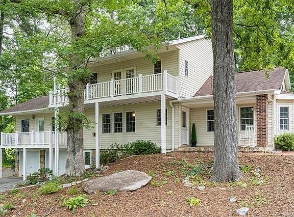 Great opportunity to own a rare property with multiple use potential. In town prime location. This 3400 plus SQFT -5 bedroom/ 6 bath home has a room for every imaginable need. Expansive garage space with room for 6 cars. Features level entry, hardwood floors, 2 master suites each with private balcony, large eat-in kitchen with newer appliances, pantry area in hallway and fireplace, spacious living room with fireplace and built-in's, study/office with separate entry, multiple guest rooms and suites. The upper level has 2nd master suite with fireplace- would also make a great family room- and another guest suite. The basement makes a great workshop space along with add'l 2 car garage and half bath. Multiple outdoor options boasting screened porch with water feature, balconies with pond views and covered patio area. The possibilities are endless- vacation rental potential or ideal for working from home with the office and separate entry. Add'l acreage which includes pond is available.