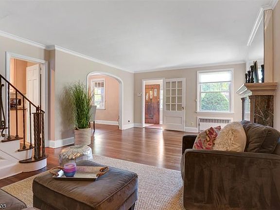 Beautiful Colonial Tudor featuring original oak floors, just refinished. Steps from Clinton Elementary School and jitney (on the corner) to NYC trains. Spacious living area including finished basement. Freshly painted w refinished original oak floors featured in this bright tudor in Maplewood. Conveniently located just steps to the jitney stop to NYC trains and Maplewood Village. The 1st level offers a LR, DR and family room office. Upstairs has 3 BRs and 1 bath. The third level has a large finished BR or bonus room with a private full bathroom. The basement is a finished recreation room w wet bar for entertaining. Enjoy a cup of coffee on the screen enclosed back porch overlooking the well-manicured lawn. Detached 2 car garage and plenty of off street parking w private driveway. FP is as-is w no known defects.