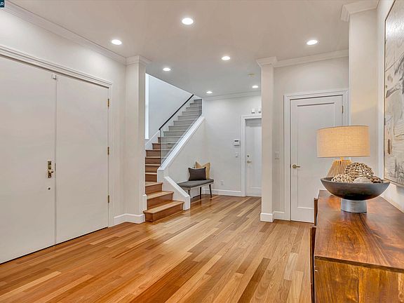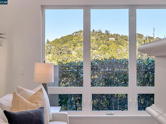 Stunning Orinda estate situated on top of the hill with spectacular panoramic views, soaring ceilings, and oversized windows exuding elegance. Brilliantly designed so that nearly every room is captivated by the views. Whether you love to entertain or simply relax by one of the fireplaces, this open floor plan accommodates. Enjoy dinner on the deck overlooking the valley, or warm yourself by the firepit on a chilly evening. A main floor office (or 3rd bedroom) and two bedrooms perfectly balance functionality and allure. With the primary bedroom privately tucked away upstairs, featuring its balcony, the glow of summer sunsets awaits you, along with a fireplace in the primary bedroom for a perfect end to the evening. Enjoy bathing in the jetted tub, or a shower with multiple jets. With an eye for the extraordinary, this home features solid Brazilian cherry floors, a custom kitchen with high-end appliances, custom bathrooms, LED recessed lights in every room, smooth walls, 2-HVAC systems, and so much more. Close to the infamous Orinda CC, award-winning schools, and easy commuting, 43 Camino Don Miguel is a treasure you won't want to miss!