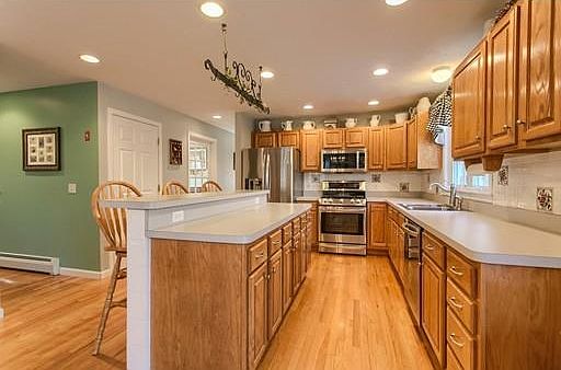 So much to love about this large country home! Seated nicely on a lovely level lot surrounded by nature, this 4 bedroom 2.5 bath colonial style home has space for everyone. An bright and open kitchen with gas range, center island and separate eating area opens to the oversized deck. The adjacent family room is kept cozy with a pellet stove. A formal dining room and formal living room with fireplace are perfect for holiday gatherings. Convenient first floor laundry. Upstairs find 4 large bedrooms each with big closets. A magnificent master suite including a master bath with cathedral ceilings, oversized shower, jetted tub and a walk-in closet - (in the bathroom!) A finished basement for entertaining was smartly built with a beverage bar and large walkout double doors to make it easy to bring in a pool table if you want. Windows abound in this bright sunny house. Plenty of living space and ample storage along with 2-car garage and a walk-up attic. Come see and make this beauty your own.