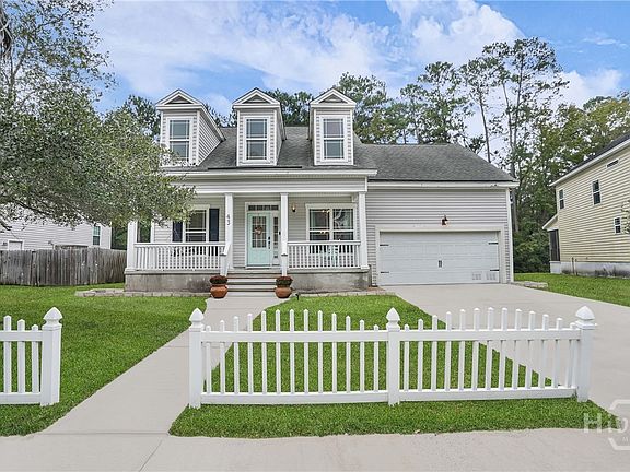 This classic coastal cottage is quintessentially “Savannah” and is just 10 minutes from Hunter AAF and I-95 in Georgetown. The rocking-chair front porch-equipped with a classic porch swing- leads you into this cheerful single-level home. With multiple living spaces, there are options galore! A formal living area or office, a dining area, and a comfortable den give flexibility. The split floor plan puts 2 bedrooms and a bath on one side, and the primary suite on the other…with 2 closets, an expansive vanity and separate tub and shower. The fully-fenced backyard backs up to green space, allowing you to enjoy your fire-side entertaining in a peaceful and private setting. The cul-de-sac is surrounded by trees and protected area, keeping nature close. Just 5 minutes from shopping and dining, this convenient cottage is an escape from it all.