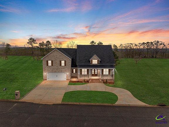 Nestled on the prestigious golf course at Southern Hills in Hawkinsville, GA, this stunning new construction combines luxury, comfort, and modern living. This 5-bedroom, 3.5-bath home offers a thoughtfully designed layout with high-end upgrades and meticulous attention to detail, making it a dream residence for families and entertainers alike. The home’s striking exterior boasts 4-side brick construction, a circular driveway for grand entrance appeal, and an impressive 8-ft solid mahogany double front door. Inside, engineered hardwood flooring spans all dry areas, complemented by ceramic tile in the bathrooms and laundry room, ensuring durability and easy maintenance. The heart of this home is the chef-inspired kitchen, equipped with an upgraded appliance package featuring an induction cooktop and convection ovens. Quartz countertops and solid wood cabinets with soft-close doors and drawers. The pantry is a game-changer, accessible directly from the garage through a Costco door, and features a wine cooler, ice maker, and custom storage. Glass upper cabinets and wood beams add charm to the kitchen, while LED lighting throughout the home ensures energy efficiency. The primary bedroom is a serene retreat with custom wood beams and a spacious custom closet system. The en-suite bathroom exudes spa-like elegance, featuring an upgraded tile shower with an oversized niche, quartz countertops, and premium fixtures. Secondary bedrooms also include custom closet systems, and the Jack-and-Jill bathroom continues the theme of luxury with a beautifully tiled shower. The living spaces are equally impressive, with wood beams accenting the living room and electric fireplaces with remote controls adding warmth and ambiance. The oversized covered back porches and decks are perfect for outdoor living, complete with iron handrails and a screened-in porch with double screen doors. An exterior electric fireplace creates a cozy atmosphere, making it an ideal spot for entertaining or relaxing year-round. Practicality meets style with an insulated garage door, abundant attic storage, and a large crawlspace area for additional storage. The backyard features a charming courtyard, perfect for gardening or enjoying the serene surroundings of the golf course. Every detail of this home has been meticulously curated, from the custom-selected fixtures to the abundance of LED lighting throughout. With its thoughtful design and luxurious upgrades, this Southern Hills property offers the perfect balance of modern living and timeless elegance, making it a must-see for discerning buyers.