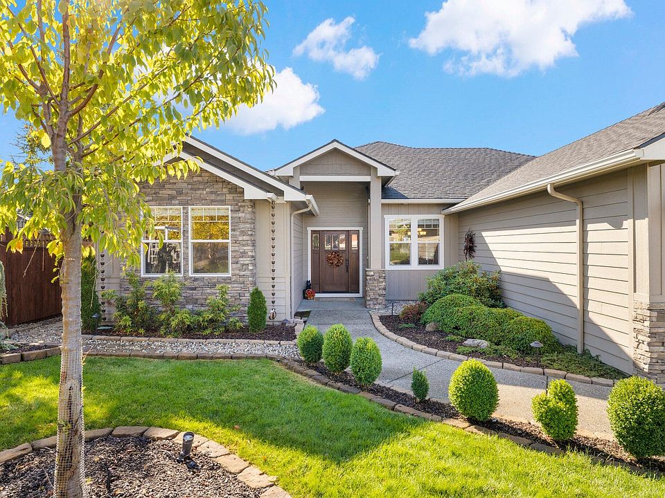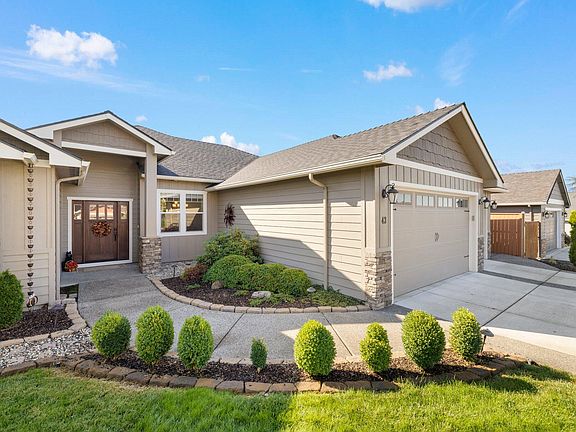 You will love this beautifully built, 4-bedroom, single level Craftsman style home on quiet cul-de-sac just one block from Eagle Point Golf Course. The impeccable interior features an open concept design, with very spacious, light-filled main living areas & rich hardwood flooring. Stylish great room with double 10' coffered ceiling & gas fireplace with stone surround. The gourmet kitchen is the heart of the home. A top-tier chef's delight with huge island, oversized dining bar, granite counters, cherry-toned cabinets, walk-in pantry, & upscale Bosch stainless appliances. Beautiful formal dining room off entry. Lovely informal dining area overlooks the rear yard & covered patio. Deluxe primary suite with walk-in & 2 additional wall closets, luxurious bath with jetted tub & dual headed tiled shower. 3 additional bedrooms & total 2.5 baths. Large covered patio with gas for grill. Covered pergola with water & electricity for a hot tub/spa. 3-car garage. 8' x10' Tuff shed. No HOA fees