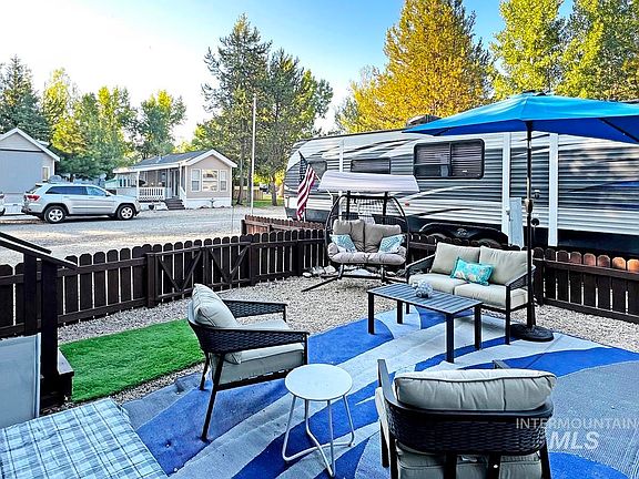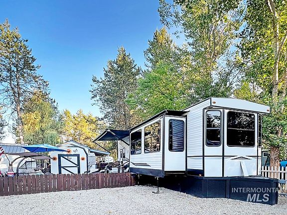 THIS TURN KEY ESCAPE is a ready-made low maintenance get away location near the Payette River! Walk along the beautiful river, paddle board on Lake Cascade, take a swing at the local golf course or a dip in the geothermal pool - you have found your destination location! The lot is ready for you to spend your evenings relaxing or entertaining with outdoor speakers, three sunshades and a fully fenced yard. Ready for seclusion, retreat to your immaculate 2021 Keystone Destination RV! This spacious home base provides all the amenities you need. The kitchen is outfitted with propane range, cozy fireplace, large pantry, central vacuum and full sized refrigerator. Ready for guests? A king sized bed, extra queen mattress and loft with two twin beds provide ample space and the washer & dryer keep up with all the laundry. Come escape to Cascade!