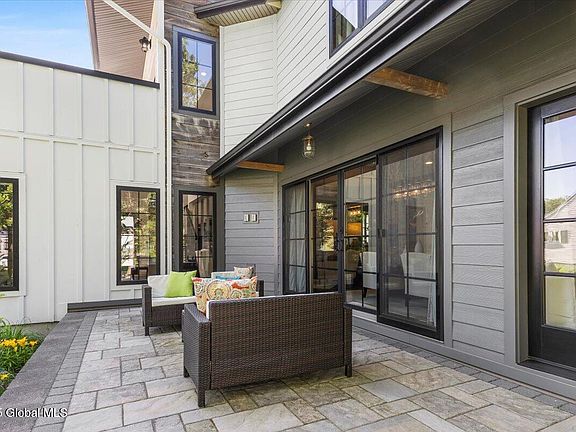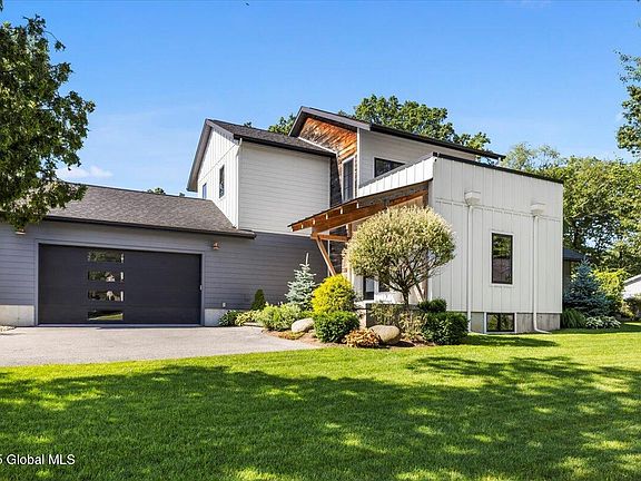 Modern luxury meets unbeatable location in this thoughtfully designed, award-winning home just minutes from downtown Saratoga, SPAC, the Track, and local favorites. Striking timber-frame floating staircase leads to a bright upper level with rooftop deck, (Great for lounging in privacy) guest bedrooms, and a bonus living space. Two private primary suites (one on each floor) offer tranquil, high-end bathrooms with soaking tubs and tiled showers. Main level features a modern chef's kitchen, walk-in pantry, and beverage station (no expense was spared) flowing into a spacious open layout perfect for entertaining. Elevator-ready for all 3 levels when you're ready to age age in place. Basement plans approved for a sauna, gym, bar, theater.