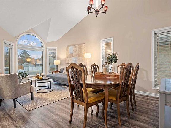 OPEN HOUSE THIS SATURDAY NOV. 8th from 2pm-4pm! Nestled in a quiet cul-de-sac within the highly desirable community of Suntree, this immaculate one-and-a-half-story residence exemplifies quality construction, refined design, and an enviable location. Offering quick access to Calgary, as well as close proximity to Good Shepherd School and the recreation centre, this property seamlessly combines convenience with tranquility. The home’s impressive interior features vaulted ceilings and an abundance of natural light, highlighting the spacious kitchen and breakfast nook, and the inviting family room with a gas fireplace—each boasting mountain views. The main level also presents a formal living and dining area, a private office, and a powder room with laundry facilities. Upstairs, the primary suite enjoys more mountain vistas and is complemented by a luxurious five-piece ensuite and walk-in closet. Two additional bedrooms and a well-appointed full bathroom complete the upper level. The developed lower level offers a generous family or recreation space with a freestanding gas fireplace and a 4th bedroom with full bath. This remarkable property represents an outstanding opportunity to own a distinguished family home in one of Suntree’s most coveted settings—where comfort, quality, and views converge in perfect harmony.