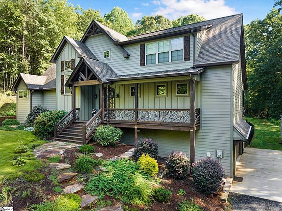 Imagine coming home each day to your own Mountain Retreat! 43 Ed Few Road is just that! This amazing 4-year-old, custom built home boasts just over 3000 sf and sits on 3 acres. From the incredible rocking chair porches, both front and back, you can drift away to the sounds of nature. Gorgeous hardwoods surround the property and are given homage throughout the home - enjoy looking for all the exciting and unique ways the wood has been used! Once inside, your eyes will immediately be drawn to the grand, stone wood-burning fireplace. It creates a beautiful backdrop for family and friends to gather. Because of the open concept, folks will easily drift to the kitchen, which is a chef’s dream with its huge center island and leathered granite countertops that flow for ample workspace. The laundry room with a unique utility sink is conveniently located off the kitchen and hidden behind an antique barn door that was found on the property. Enjoy outdoor living on the lovely back porch with built in bar top, which overlooks the beautiful, fenced back yard. The owner’s suite in itself, is its own sanctuary. Off of it resides a private office space, sitting area or even nursery hidden behind a set of rustic barn doors overlooking the scenic backyard. The large ensuite bath has slate flooring, a deep stone shower and large walk-through closet. Upstairs you’ll find a cozy loft area and two ample sized bedrooms connected by a Jack and Jill bath. Storage cubbies are off each bedroom. But wait! There is plenty of extra storage in the partially finished basement! Enter a wonderful flex space that has its own rustic feel with corrugated metal sheeting that is heated and cooled and has been plumbed for an extra bath. There is a large unfinished portion great for storage, exercise equipment or a future expansion. The home has energy efficient, upgraded insulation, a gutter guard system for easy maintenance along with a 10 X 16 pre-wired storage shed. Moreover, the fun of Lake Robinson is only 2 miles away! Downtown Travelers Rest and Greer, and all the conveniences of Wade Hampton Blvd. are about 15 minutes away and Downtown Greenville, around 30. It also boasts the excellence of Blue Ridge Schools. Don’t miss this select opportunity! Call for your private showing today!!