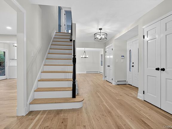 Upstairs, the spacious primary suite includes a new luxurious bath with a walk-in shower, double sinks, and marble counters. Three additional bedrooms share a new hall bath with double sinks and a relaxing Jacuzzi tub.