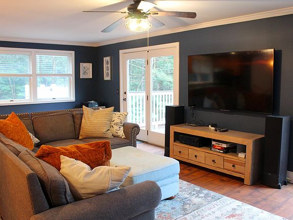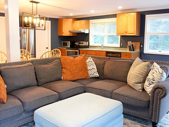 This spacious move-in ready home is only minutes from Mount Snow. It has lots of room for all your family and friends with its 4 bedrooms, 4 baths, open concept living/dining/kitchen room that's perfect for entertaining. Spend summer evenings on the large deck and enjoy the wooded setting overlooking the private yard. The attached double garage makes winter arrivals comfortable, and an attractive circular driveway accommodates extra parking. The primary bedroom is en-suite and has a large walk-in closet, and the bath is newly renovated with double vanities and an oversized walk-in shower. Two other bedrooms share a full hall bath. On the 3rd level, a huge workout area/entertainment space is perfect for a home office. A new water heater was installed in 2023. 8 minutes to Mount Snow and 10 minutes to Wilmington's shopping and dining. Make an appointment to tour this lovely home today. You could be in before the ski season starts!