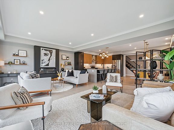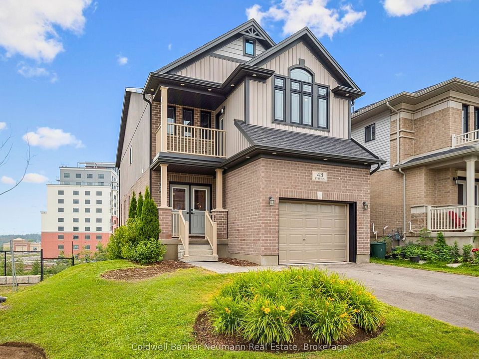 Welcome to 43 Everton Drive, the stunning, Award Winning Model Home at The Glade by Fusion Homes. Nestled on a premium walkout lot in Guelphs East End, this detached home blends modern design with exceptional craftsmanship that Fusion Homes is known for. The open-concept main floor showcases hardwood flooring, abundant natural light, and a chef-inspired kitchen with custom two-tone cabinetry, a quartz waterfall island with seating, and designer finishes. Upstairs, enjoy a versatile family room with balcony access, a primary retreat with walk-in closet and spa-like ensuite, plus two additional bedrooms, a full bath, and an upgraded laundry room.The fully finished walkout basement offers endless options, like a rec room, gym, media lounge, or future in-law suite with separate entrance. Move-in ready and one of a kind, this property is a rare opportunity in a vibrant, family-friendly community.
