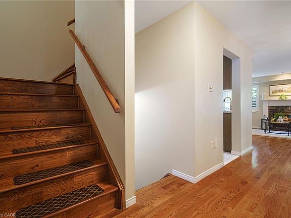 Beautifully Renovated Freehold Executive Townhome in Sought-After Aldershot. Welcome to this stunning 2-bedroom, 4-bathroom freehold executive townhome, perfectly situated in a quiet, boutique complex on an oversized private lot (18' x 211' deep). Offering a rare combination of space, style, and modern upgrades, this home is designed for both comfort and entertaining. Inside, you'll find a fantastic open-concept layout featuring a separate dining room and a spacious living room with a cozy gas fireplace, hardwood floors throughout three levels, California shutters, and a new patio door that opens to a deck and beautifully landscaped gardens. The modern kitchen has been tastefully updated with granite countertops, a breakfast bar, and stainless steel appliances, while the powder room shines with new fixtures and finishes. A main floor laundry with inside access to the garage adds convenience, with an updated garage door and opener. The second floor offers a bright home office and a large family room(can also be used as a third bedroom)overlooking the front gardens. Upstairs, the third level boasts two generously sized bedrooms, each with its own ensuite. The principal suite features hardwood floors, mirrored wardrobes, ample closet space, and a renovated 3-piece bath. The second bedroom offers a large closet, an updated 4-piece ensuite, and a new window (2022).The fully finished lower level is an entertainer's dream with a spacious recreation room, second gas fireplace, wet bar, storage, and an updated 3-piece bath. Step outside to your private backyard oasis—a gardener's delight—featuring multiple decks (2023), pathways, sitting areas, and professional landscaping. Located in desirable Aldershot, this home is within walking distance to LaSalle Park, scenic hiking trails, shopping, transit, and highways—the perfect blend of convenience and lifestyle.