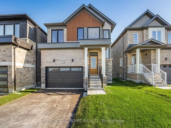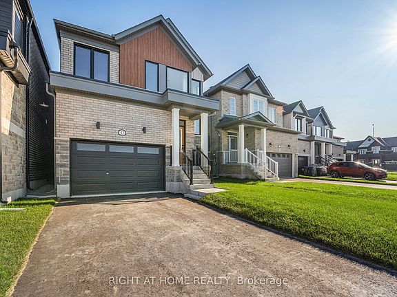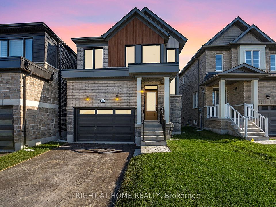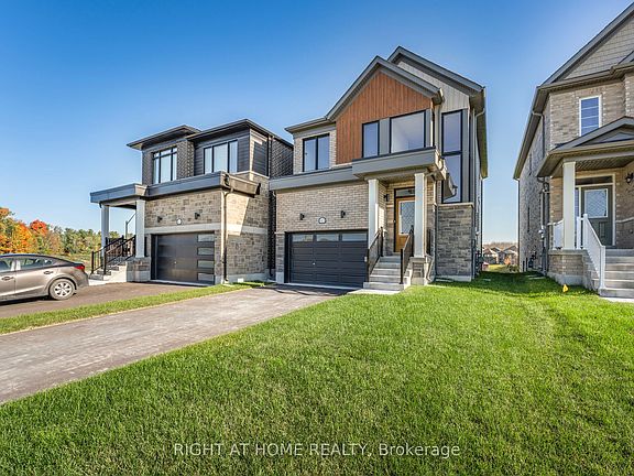 Modern 3-bedroom home located in the vibrant River's Edge community in the ever-growing town of Wasaga Beach. This open-concept layout is filled with natural light from sleek windows and features 9 ft ceilings, a stained oak staircase, and a stylish blend of vinyl plank flooring and 12x24 tile. The fresh white kitchen with a navy blue accent island and stunning quartz countertops creates the perfect space for cooking and entertaining. The main hall offers interior access to the single garage, complete with an EV-charger rough-in for future convenience. The upper level features vinyl plank flooring in the hallway, three carpeted bedrooms, and a spacious main bathroom. The primary bedroom includes a walk-in closet and a 5-piece ensuite with a glass shower and relaxing soaker tub. A walkout basement provides endless possibilities-create a home office, in-law suite, entertainment space, or anything your lifestyle needs. Located in a family-friendly neighbourhood close to the newly built elementary school and scenic walking trails, this home is an ideal option for first-time buyers, downsizers, or investors. Immediate possession available-just in time for Christmas!