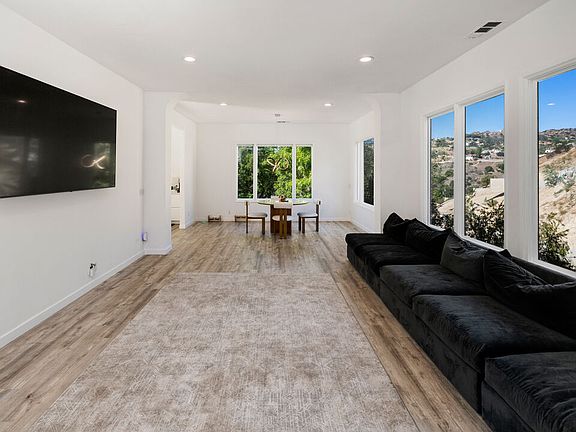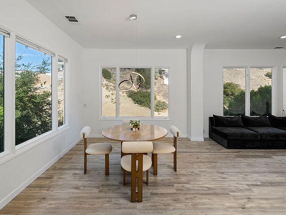 This stunning contemporary style home blends style and functionality within the exclusive 24 hour guard gated community of Bell Canyon, part of the award winning Las Virgenes School District. Designed for comfort and entertaining, the open concept layout features high ceilings, designer lighting, and walls of glass showcasing breathtaking canyon and mountain views. The home offers 5 bedrooms and 5 baths, including a newly remodeled chef's kitchen with a quartz waterfall island, stainless steel appliances, and a wine fridge opening to a spacious family room with a dramatic 100" linear fireplace. Formal living and dining areas provide ideal spaces for gatherings, while a private wing offers flexibility for a guest suite, office, or game room.Entertainment highlights include a custom wine cellar with whiskey bar and a home theater with kitchen bar. The luxurious primary suite features a cozy fireplace, sitting area with panoramic views, walk-in closet, and a spa inspired bath.Enjoy serene outdoor living with peaceful gardens, multiple terraces, and areas perfect for dining al fresco. Additional features include an oversized 3-car garage and abundant storage. Bell Canyon offers resort style amenities, private parks, equestrian center, hiking and riding trails, tennis courts, fitness gym, clubhouse events, and 24 hour guarded entry, all just minutes from the best of Los Angeles.