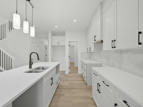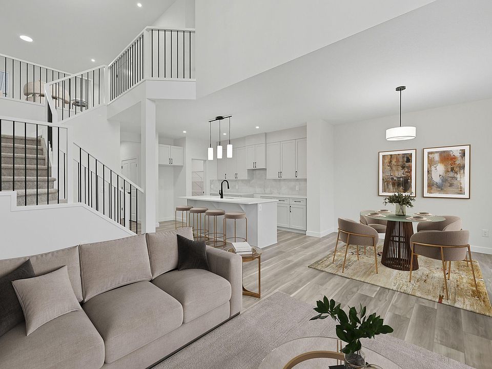 The Victor offers 2067sqft- built to support modern families with comfort, flexibility, & future potential. With a MAIN FLOOR BD/full bathroom, side entry, & stunning open-to-above great room, this home is move-in ready. Mainfloor with 9' ceilings delivers a spacious, connected layout where the kitchen, dining nook, & great room flow effortlessly together. Kitchen is beautifully finished with a flush eating ledge island, walk-in pantry, & quartz countertops throughout. Cozy fireplace adds warmth to the greatroom, while main floor bdrm/full bath offer ideal flexibility for guests, aging parents, or home office use. Side entrance creates a clear opportunity for future basement suite development or private access. Upstairs, central bonus room acts as the perfect hub for movie nights or playtime. Primary suite features walk-in closet/spa-style ensuite with dual sinks, drop-in tub, & separate shower. Two additional bedrooms each come with their own walk-in closet, built-in study nook & laundry room nearby.